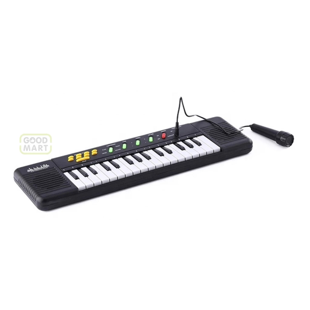 32 chaves design. canções de demonstração, com funções de controle de volume e controle de tempo -Equipado com um microfone externo. Permite que seus filhos desfrutar de música maravilhosa. As crianças podem aprender, jogar, e deixe o seu filho cair no amor com a música -Quando a tocar piano, as crianças podem exercer sua coordenação olho-mão, coordenação motora, puzzle, rica imaginação e emoções -Único falante estéreo. Efeito de som Surround -Com material ecológico, saudável e não-tóxico -As chaves de material macio sem mãos lesão, não vai afetar as crianças o desenvolvimento dos ossos do dedo -Perfeito para as idades 3 anos e mais velhos. UM brinquedo educativo perfeito para ajudar as crianças a melhorar a sua inteligência -Presente perfeito para seus filhos Especificações: Material: plástico Powered by: 4 pilhas AA (não incluídas) Apropriado para a idade: mais de 3 anos de idade Nota: Não para crianças menores de 3 anos. Faixa etária:> 3 anos de idade Características:Eletrônico Material:Plástico Tipo:Teclado Peso do produto:0.3370 kg Peso do pacote:0.4230 kg Tamanho do pacote (L x W x H):48.50x13.50x3.30 cm/19.09x5.31x1.3 polegadas Conteúdo Do pacote:1 x Teclado Eletrônico do Piano, 1 x Microfone