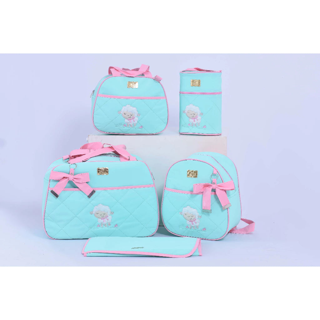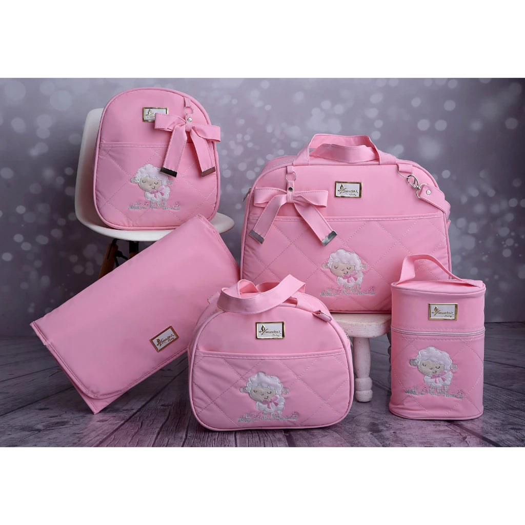 bolsa maternidade menina kit de luxo mala para bebê ovelhinha luender baby Bem vindos a LUENDER BABY. Bem vindos a LUENDER BABY. Nosso kits são de fabricação própria por isso temos o melhor preço. BOAS COMPRAS!!!! perguntas frequente; "borda o nome nas bolsa" R_ Não *Nosso kit com 5 peças é composto de: -Bolsa G; -Bolsa M; -Mochila; -Porta mamadeira: -Trocador; - 1 Alça removível com regulador; -2 chaveiros * MEDIDAS: -Bolsa G: Altura: 31 cm Largura: 41 cm Comprimento: 18 cm -Bolsa M: Altura: 25 cm Largura: 30 cm Comprimento: 13,5 cm - Mochila: Altura: 29,5 cm Largura: 26,5 cm Comprimento: 16 cm -Trocador: Altura: 65cm Largura: 39cm - Porta mamadeira: tamanho universal com 2 cavidades.